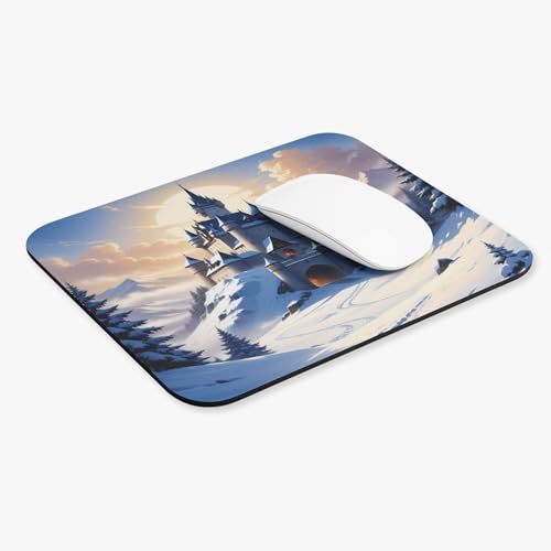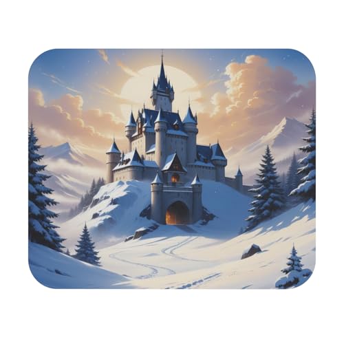 Generic - قاعدة ماوس بتصميم قلعة الشتاء للكمبيوتر واللاب توب - سجادة مكتب بتصميم قلعة ثلجية خيالية بتصميم مناظر طبيعية شتوية مريحة