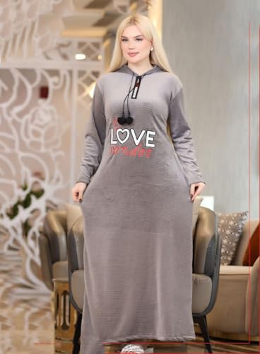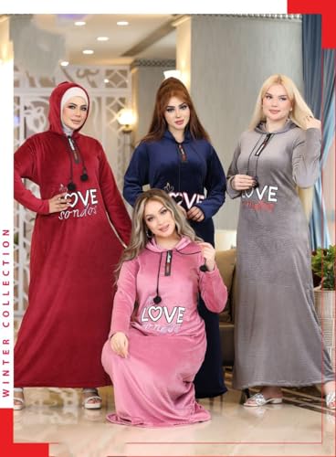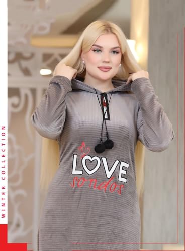 SONDOS FOR HOMEWEAR - فستان نسائي من الكوردوروي، متوفر باللون الأحمر والنيفي والرمادي والوردي، مقاس 60-90 كجم، بتصميم كاجوال مع غطاء للرأس