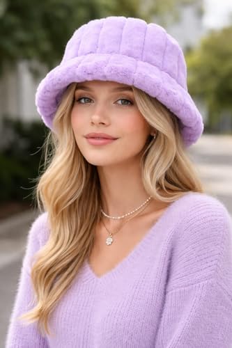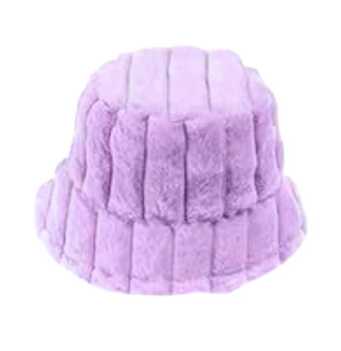 Generic - قبعة باكيت شتوية من الفرو المضلع، لون بنفسجي، فرو صناعي ناعم، قبعة دلو عصرية للنساء