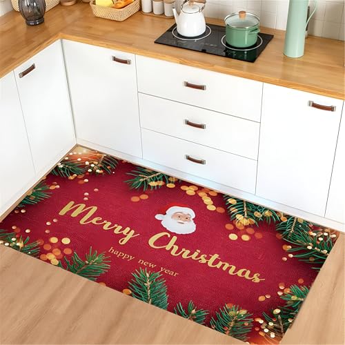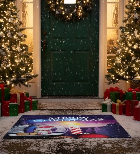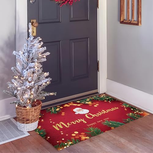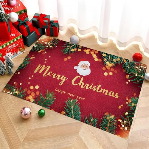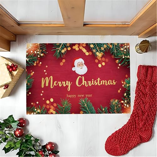 Generic - سجادة ديكور شتوية، سجادة مدخل أنيقة للكريسماس مع سانتا وشجرة وزخارف على شكل هدايا، ظهر آمن غير قابل للانزلاق وسطح ناعم الملمس لبيوت العطلات المريحة (قماش، 40 × 60 سم)