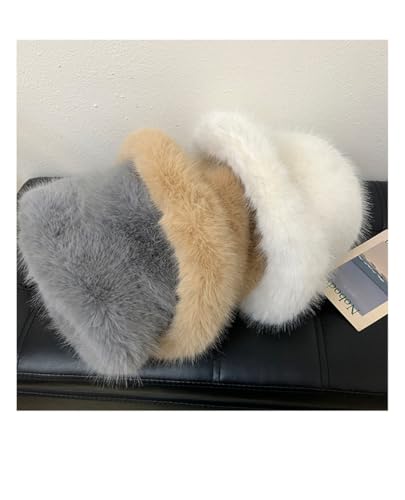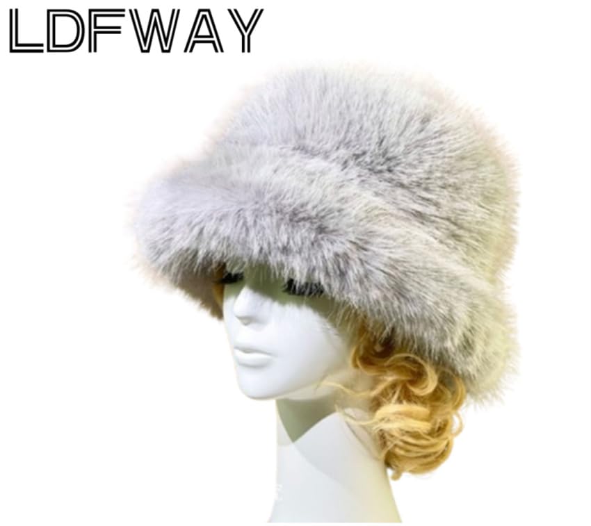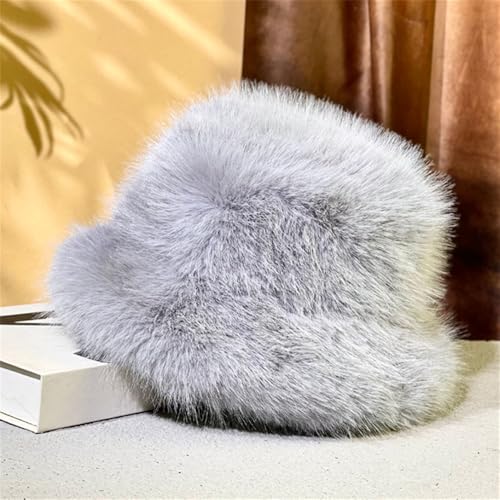 LDFWAY - قبعة باكيت شتوية منفوشة من الفرو الصناعي للنساء، قبعة صياد السمك الدافئة في الهواء الطلق، قبعة شتوية سميكة للسيدات (رمادي)