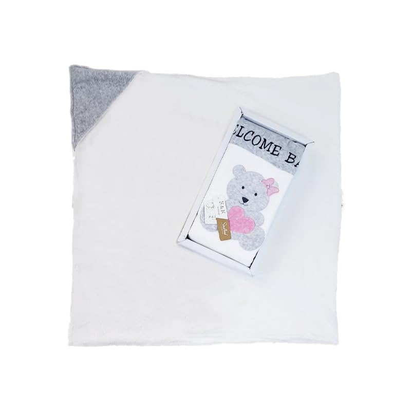 Generic - بطانية أطفال شتوية من الفرو - دبدوب رمادي وبينك
