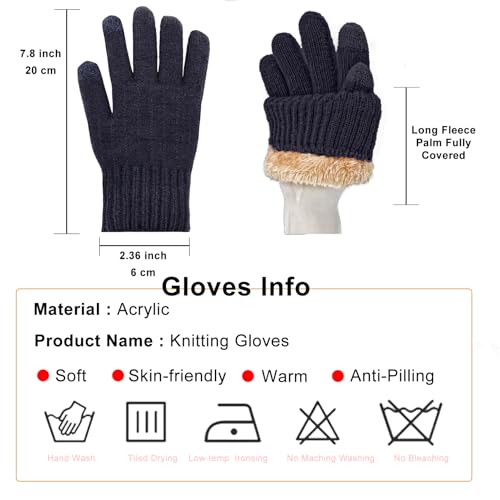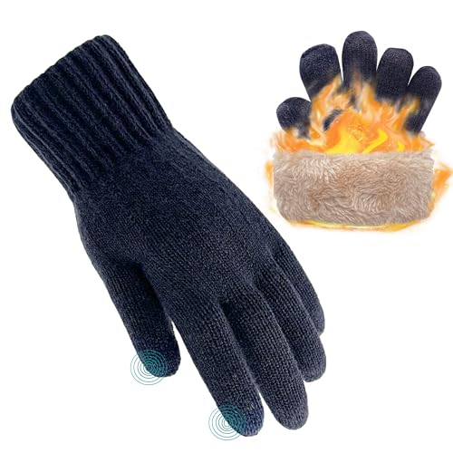 Beurlike - قفازات شتوية دافئة للنساء بشاشة تعمل باللمس، قفازات من قماش مضفر منسوج ومبطنة بالصوف الناعم لطقس بارد