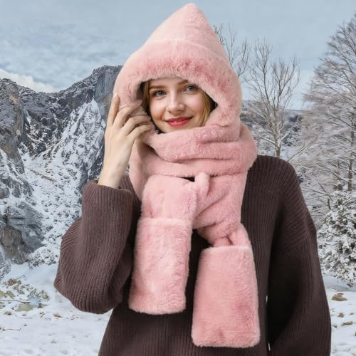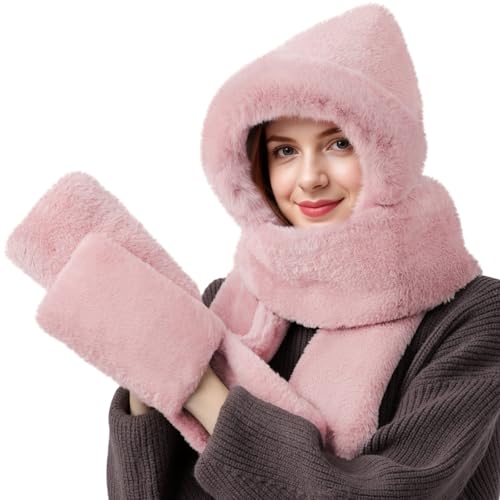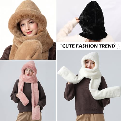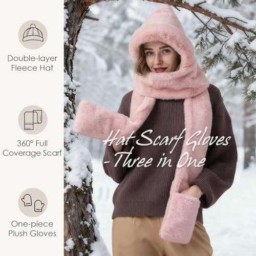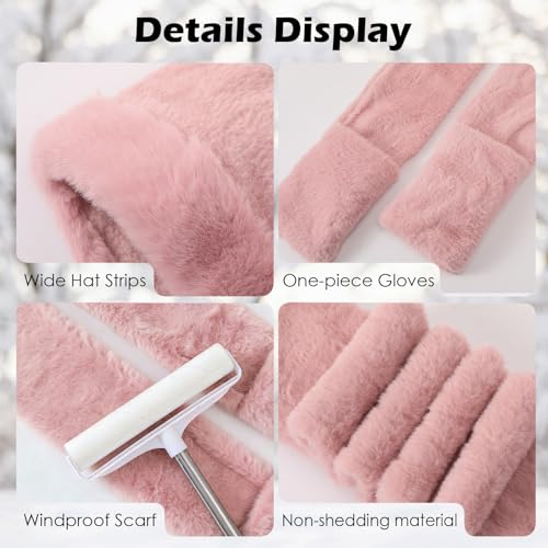 Premillow - طقم قبعة شتوية ووشاح وقفازات للنساء، 3 في 1 قبعة دافئة من الفرو الصناعي مع وشاح وقفازات جيب للبالغين
