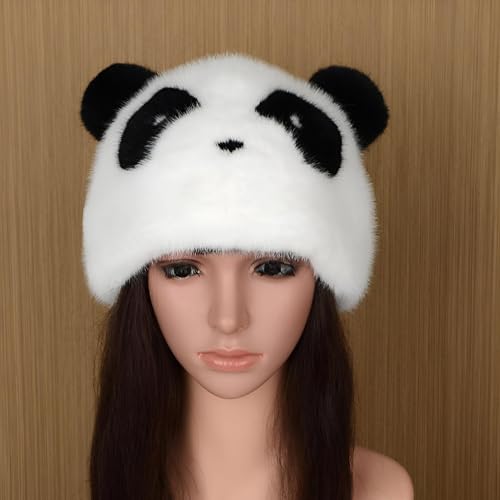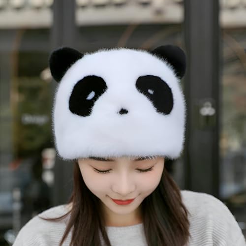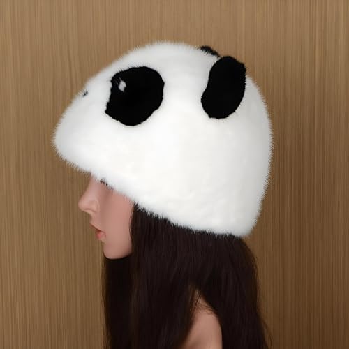 Generic - طاقية شتوية صغيرة مريحة قطيفة بتصميم باندا بأذنين للنساء، طاقية من قماش منفوش للطقس البارد، مكملات ملابس لطيفة