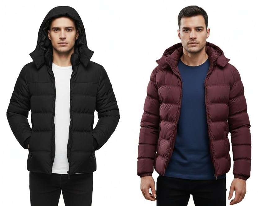 Generic - جاكيت شتوي مبطن بغطاء للرأس، معطف مبطن مع غطاء للرأس، حزمة، ملابس خارجية دافئة معزولة