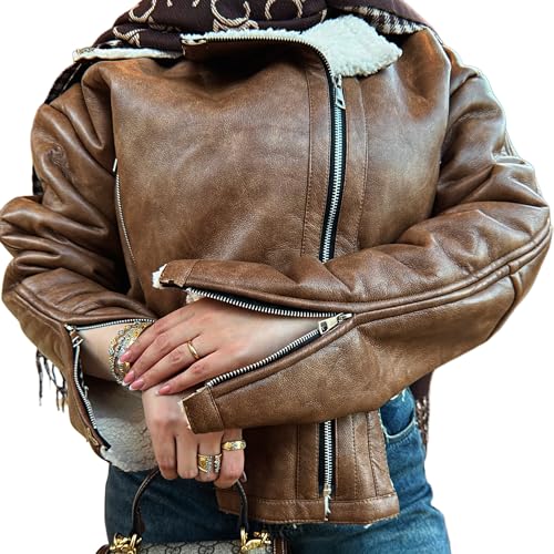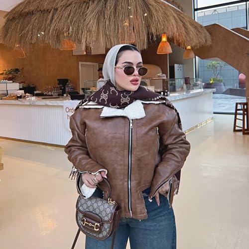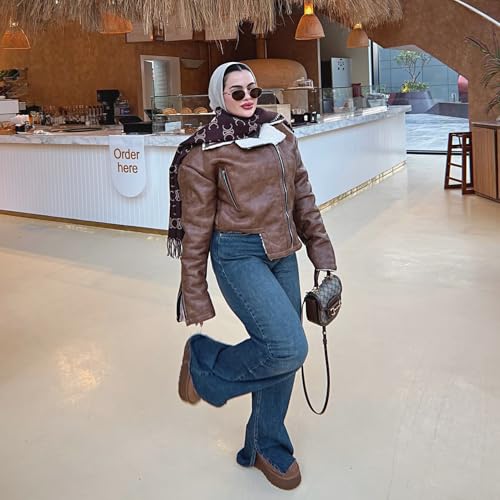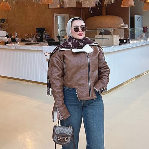 Generic - جاكيت شتوي نسائي مبطن فرو من الداخل خامة جلد/شامواه (Waterproof)، تصميم شتوي أنيق ومريح بسحّابات معدنية مناسب للخروج والكاجوال مقاس واحد: من50كيلو إلى 80كيلو