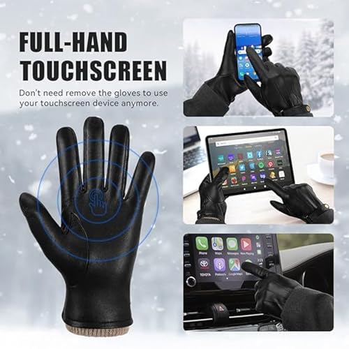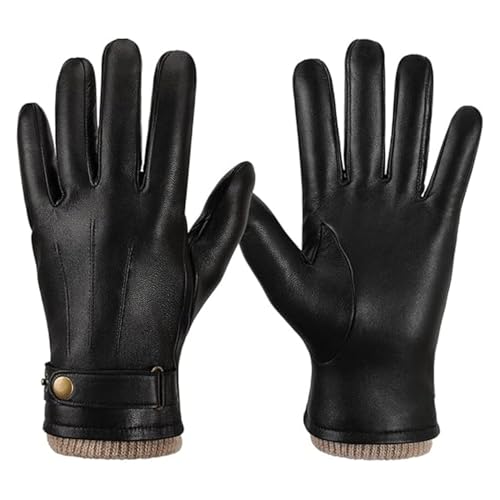 KASTWAVE - قفازات جلدية شتوية للرجال، قفازات سوداء بإغلاق بكباسين، مناسب للاستخدام مع شاشة تعمل باللمس، لركوب الدراجات في الأماكن الخارجية، قفازات دافئة مقاومة للماء (مقاس لارج L)