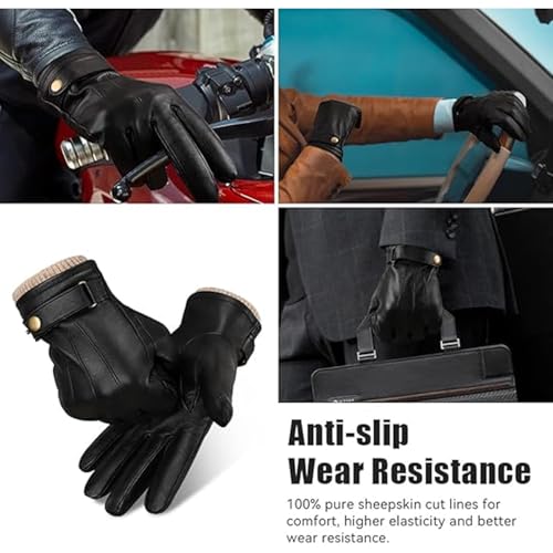 - 🔥【حافظ على دفء يديك】يمنع الانكماش المرن لمعصم القفازات الجلدية الرياح الباردة مما يحافظ على دفء يديك بما يكفي في الشتاء البارد. قفازات الشتاء مصممة من جلد ناعم مقاوم للرياح، وهو أفضل خيار للاستخدام الخارجي في الطقس البارد.