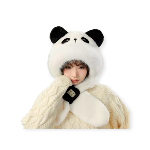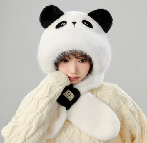 Generic - غطاء رأس شتوي على شكل باندا وتايجر ، قطيفة ناعمة، أبيض وأسود، مع قبعة دافئة وأذنين