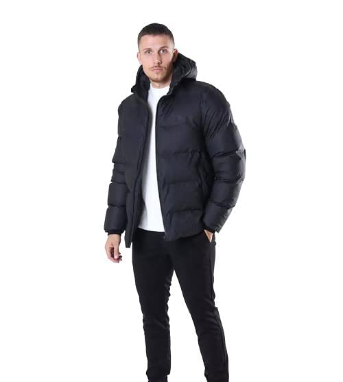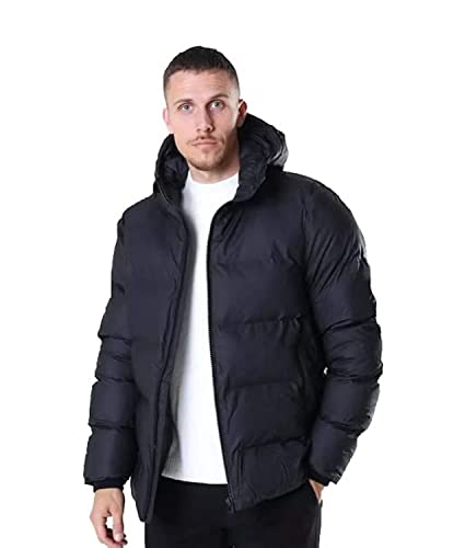 Generic - جاكيت مبطن للشتاء باكمام طويلة منفوخة وسوستة مع غطاء رأس قابل للازالة XXL ، كحلي للكبار من الجنسين