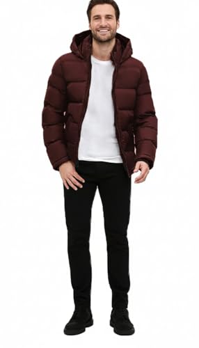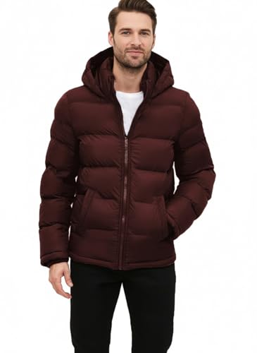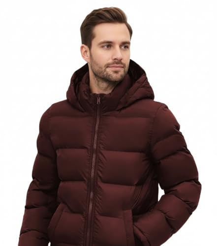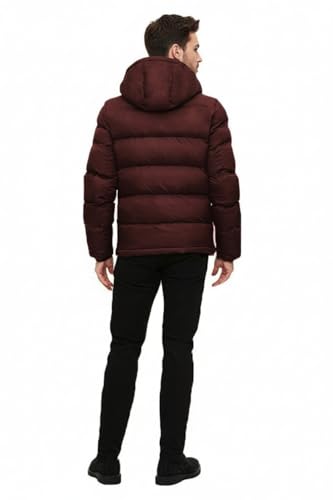 Generic - جاكيت مبطن شتوي بغطاء الرأس، ملابس خارجية دافئة ببطانه لا تتكتل، لون بورغندي