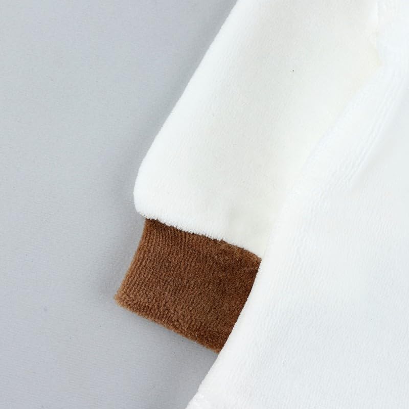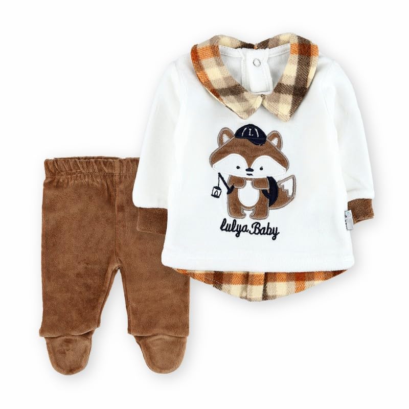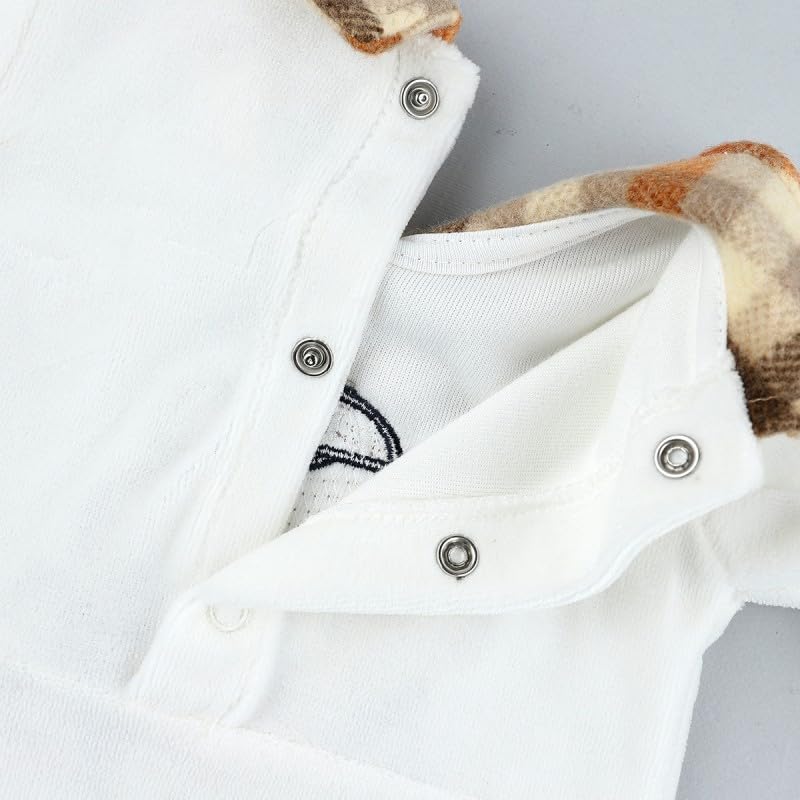 Generic - بيجامة شتوية بنقشة مربعات باللونين الابيض والبني مع بنطلون بارجل | 0-3 اشهر