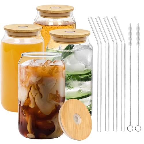 - قيمة رائعة - يبلغ قطر هذه الأكواب الأربعة 7.5 سم وارتفاعها 14 سم. تأتي مع 4 أغطية من الخيزران مانعة للتسرب و4 ماصات زجاجية و2 فرشاة تنظيف..