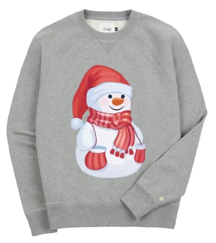 Generic - سويت شيرت شتوي بتصميم رجل الثلج، بلوفر من مزيج القطن الرمادي مع تصميم عطلة احتفالية، كم طويل ورقبة دائرية بدون طوق مقاس (M)