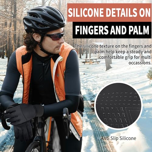 HOPSOOKEN - جوانتي رياضية شتوية للرجال والنساء مصنوعة من الصوف الحراري مقاومة للرياح ومقاومة للماء ومتوافقة مع شاشات اللمس لركوب الدراجات والمشي لمسافات طويلة والرياضات الخارجية