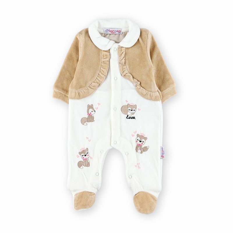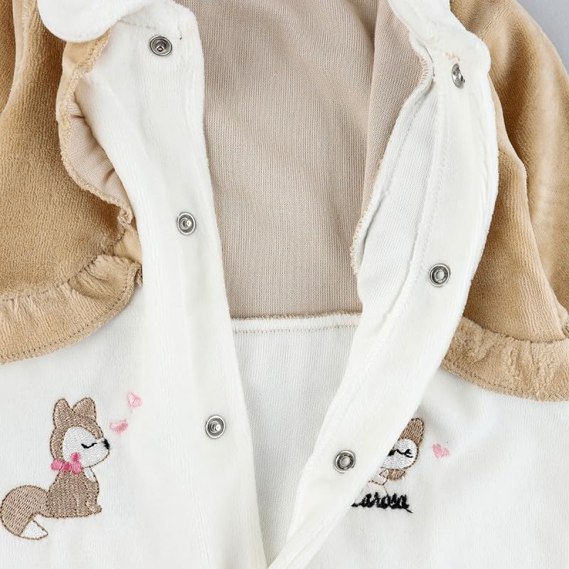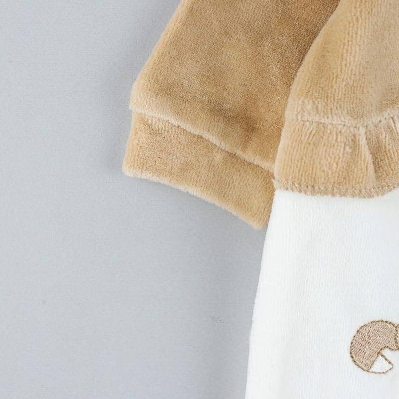 Generic - جمبسوت شتوي بتصميم سنجاب - صوف ناعم، مقاس حديثي الولادة، ابيض وبني | ملابس اطفال مريحة