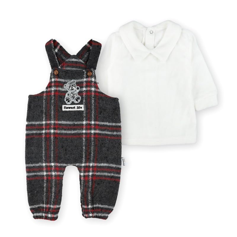 Generic - سالوبيت شتوي من قطعتين بنمط مربعات احمر، مقاس 9-12 شهر