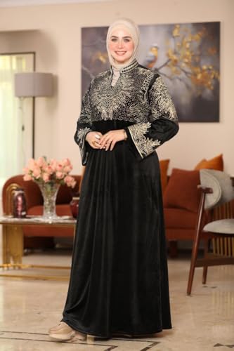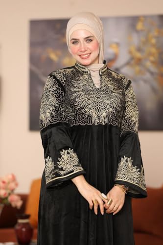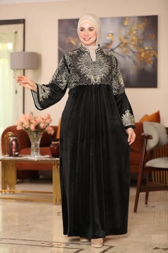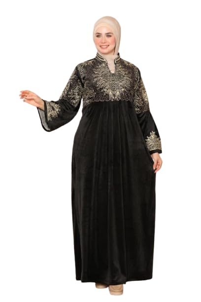 Generic - عباية شتوية للنساء، مصنوعة من المخمل، مطرزة، متوفرة بمقاسات من 29.5 حتى 63.5 كجم، بتصميم أنيق ومحتشم