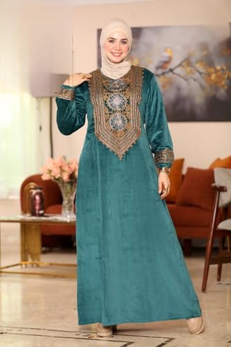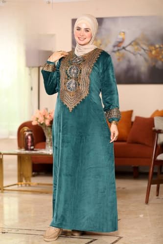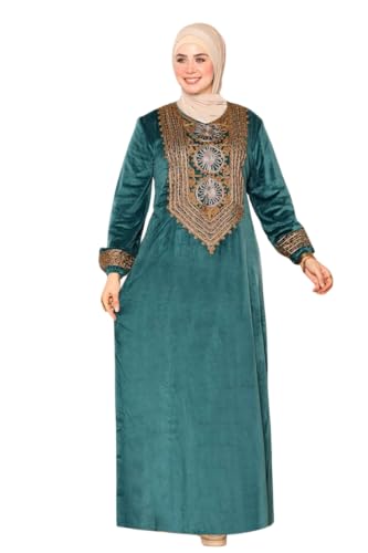 Generic - عباية شتوي قطيفة للمحجبات – تطريز أنيق على الصدر – تصميم محتشم واسع – عباية خروج شتوية للمقاسات الكبيرة من 65 حتى 120 كجم