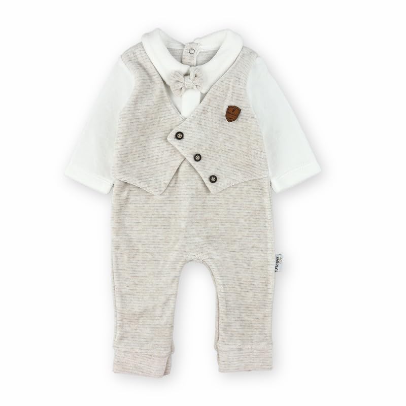 Generic - سالوبيت شتوي قطيفة مع ربطة فيونكة، لون بيج فاتح، مقاس 3-6 أشهر