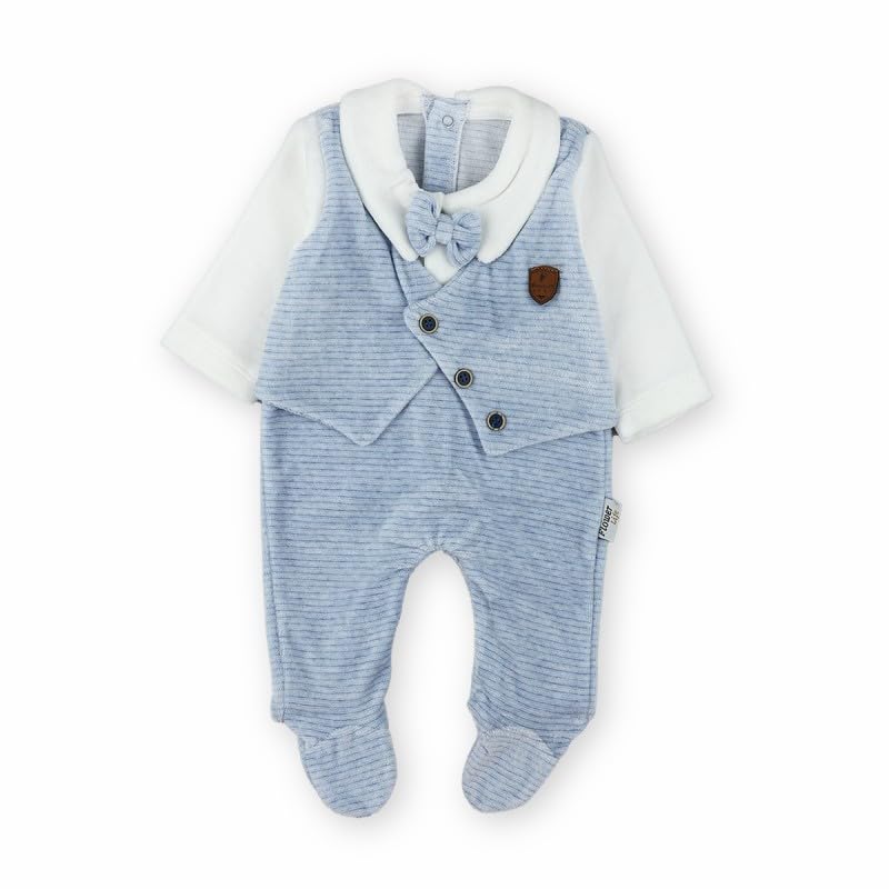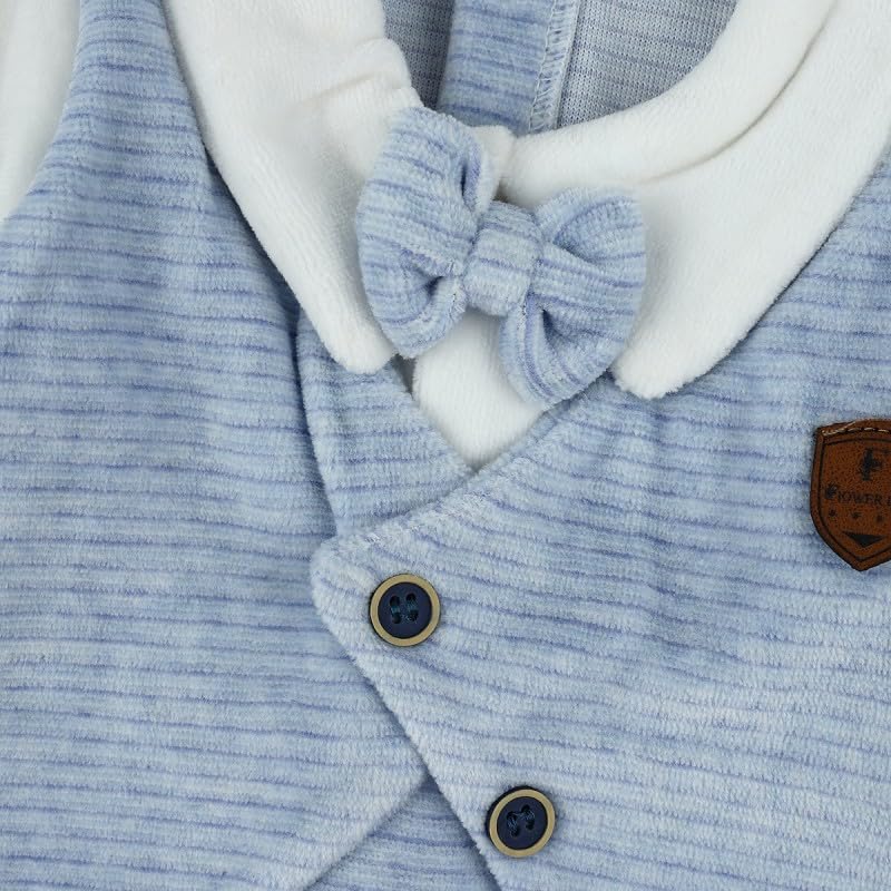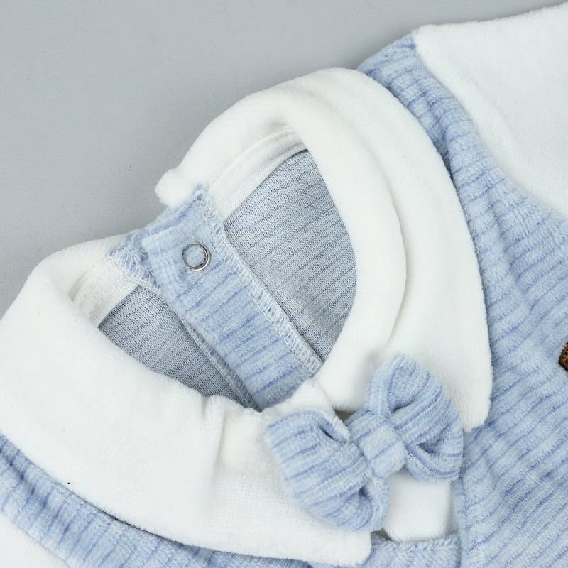 Generic - سالوبيت شتوي قطيفة بربطة على شكل فيونكة، أزرق فاتح، مقاس للأطفال حديثي الولادة إلى 3 شهر
