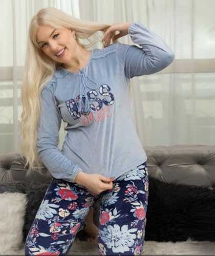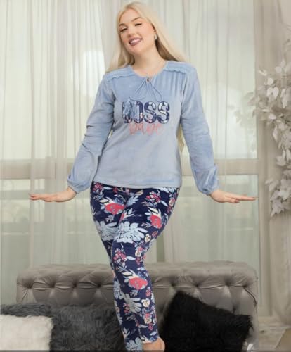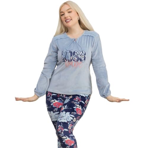 Generic - طقم بيجامة شتوي قطيفة - قطعتين تطريز