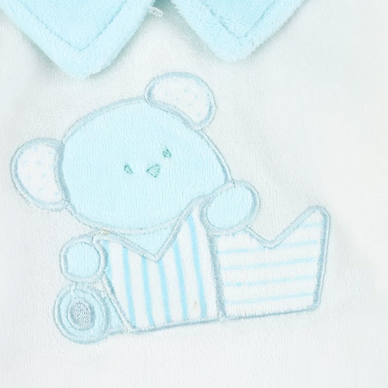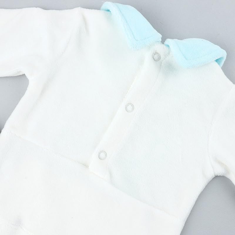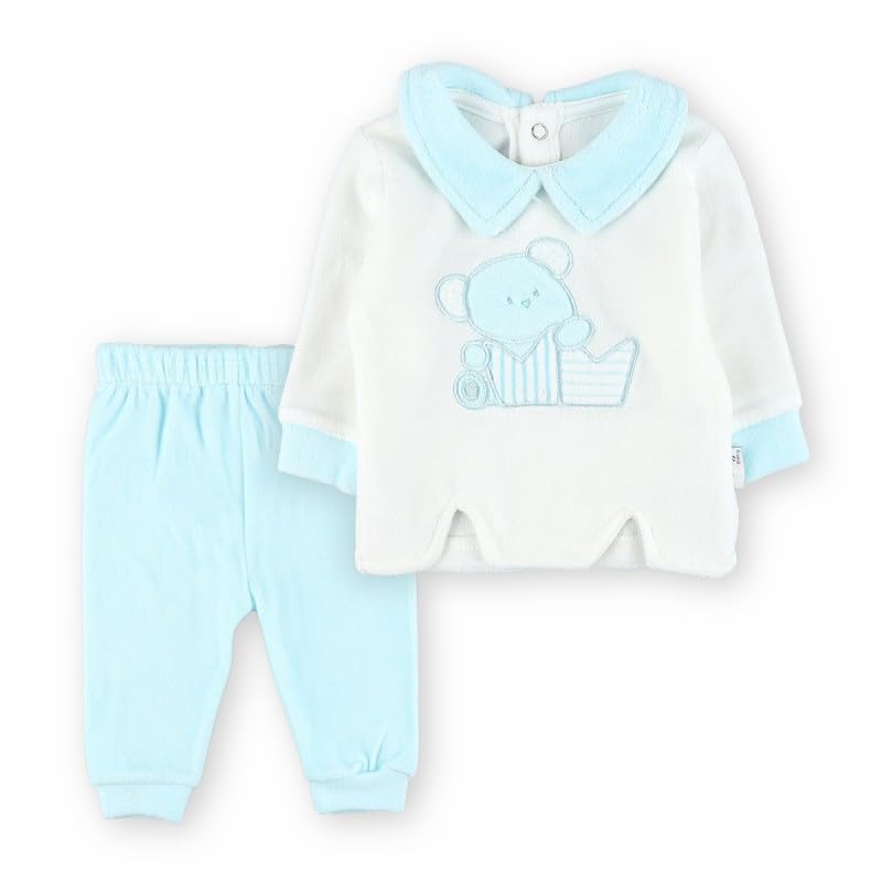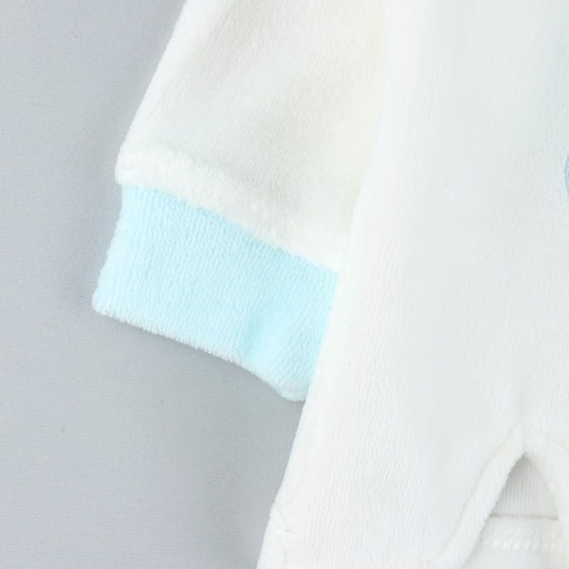 Generic - طقم بيجامة قطيفة شتوي للاطفال - ابيض وازرق | 6-9 اشهر
