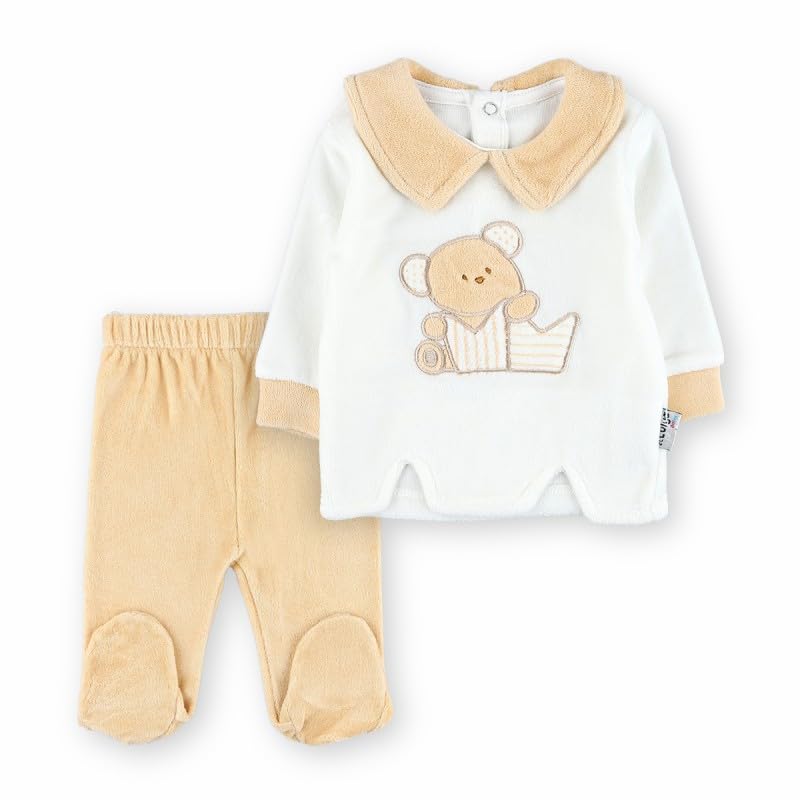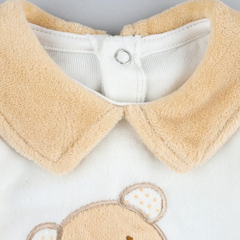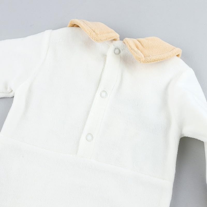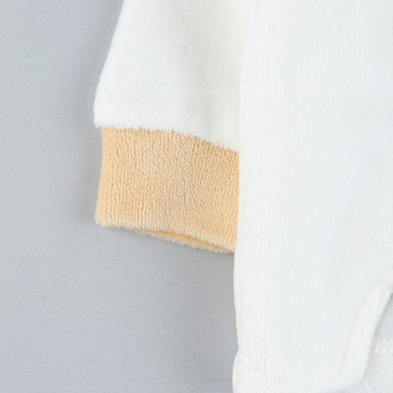 Generic - طقم بيجامة قطيفة شتوي للاطفال - ابيض واصفر | 0-3 اشهر