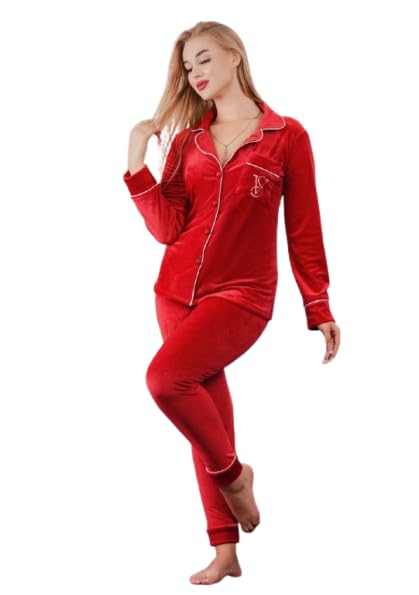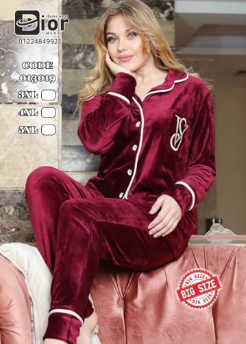 Generic - طقم بيجامة قطيفه شتويه مقاس 2اكس لارج للنساء