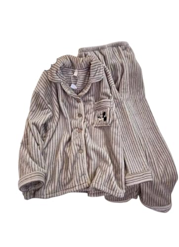 Generic - بيجامة شتوي قطيفة مخططة ناعمة بفري سايز مريح