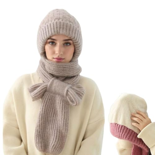 Nitvei - سكارف شتوي منسوج بغطاء للرأس للنساء، سكارف سميك ومقاوم للرياح متكامل للتدفئة وحماية الأذنين