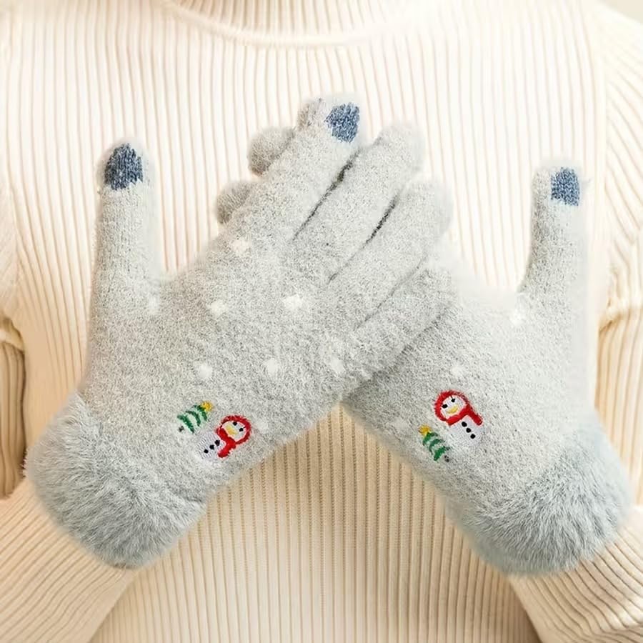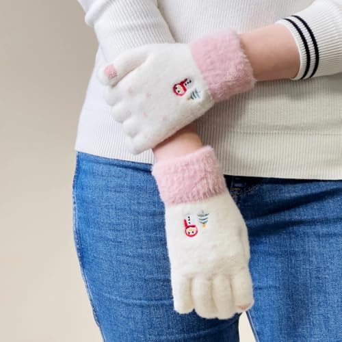 Generic - قفازات شتوية دافئة تدعم استخدام شاشات اللمس للنساء والرجال – قفازات محبوكة سميكة مرنة بخمسة أصابع ببطانة فرو منك صناعي ناعم – قفازات كاجوال للبرد والقيادة والأنشطة الخارجية
