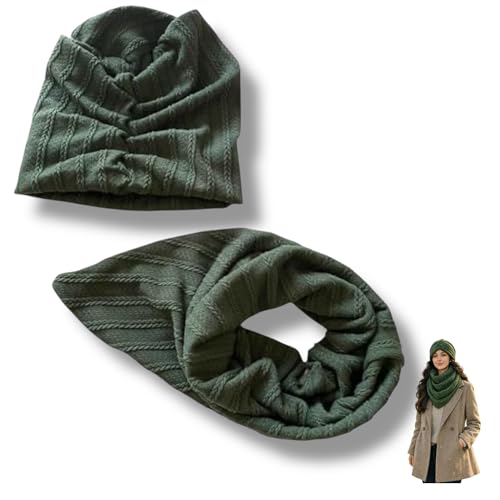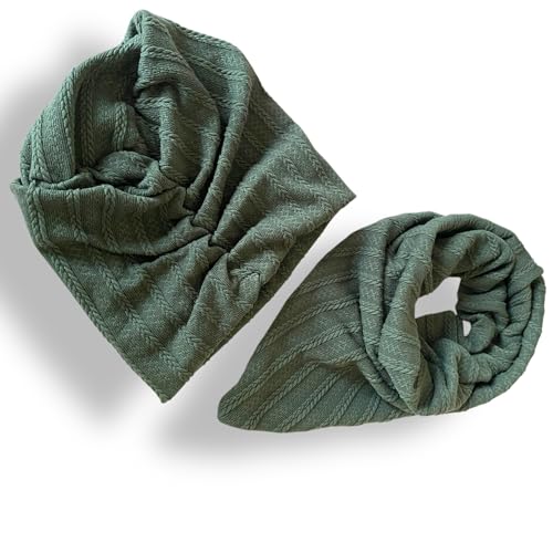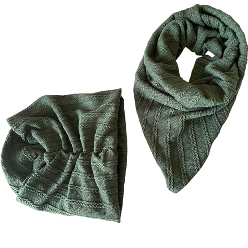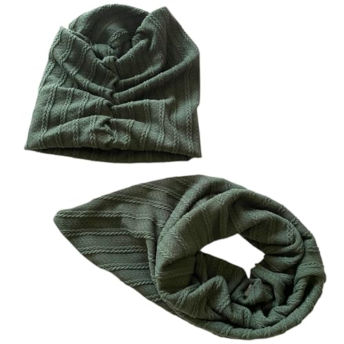 Generic - طقم تربون شتوي بمقاس قابل للتعديل، سكارف مريح مقاوم للتعرق للنساء، قطعتين، لون أخضر (Sage Green)