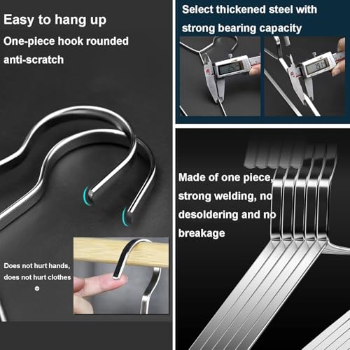 - تصميم محسن: تنتهي شماعات الملابس المصنوعة من الفولاذ المقاوم للصدأ برأس كروي أملس يمنع خدش الملابس بفعالية، وتتميز شماعات المعادن المانعة للانزلاق بأنها أقوى وأكثر متانة من شماعات الخشب، بالإضافة إلى كونها رفيعة وخفيفة الوزن.