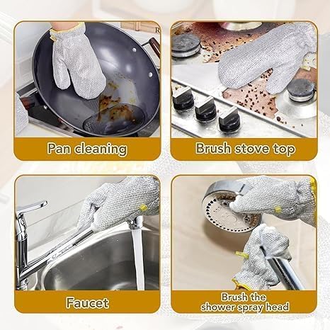 - هيكل سلك معدني مقاوم للخدش: الجوانتي بتصميم سلك معدني مبتكر يسمح لك بالجلي والتنظيف بفعالية دون خدش أو إتلاف الأسطح الحساسة. وهذا يجعله مثاليًا لتنظيف كل شيء بدءًا من أواني الطهي المقاومة للالتصاق حتى الأواني الزجاجية، مع توفير تنظيف عميق.