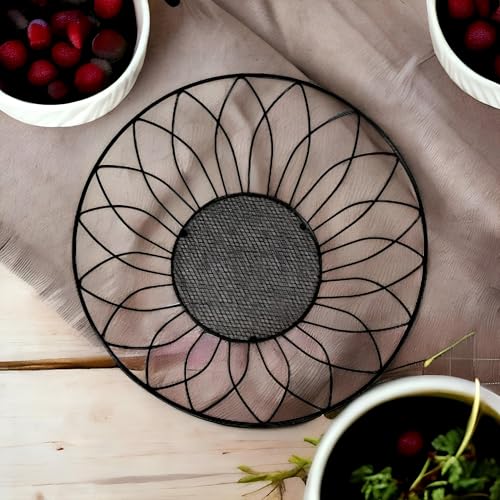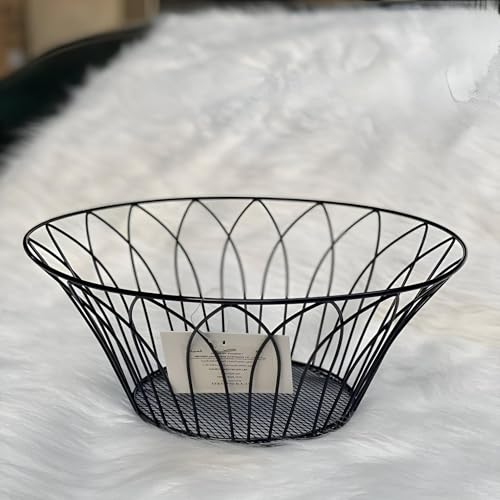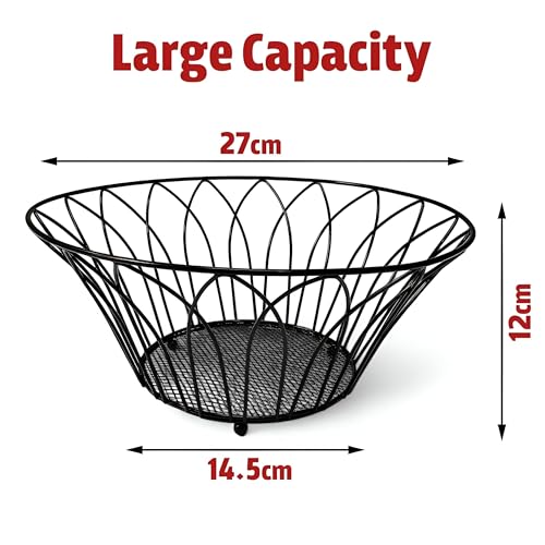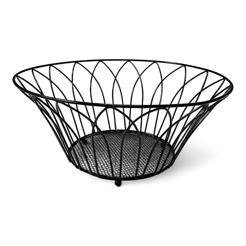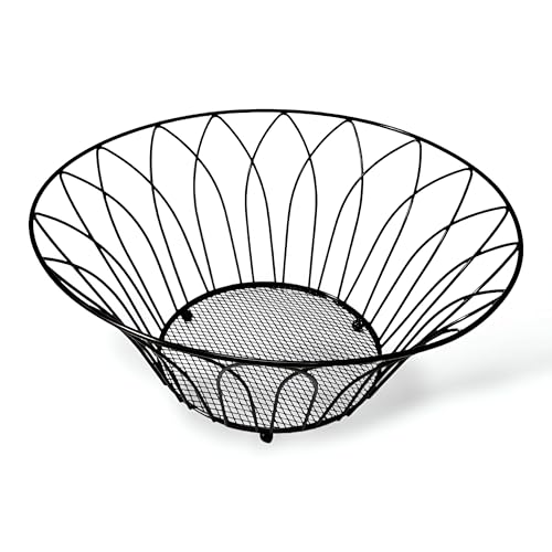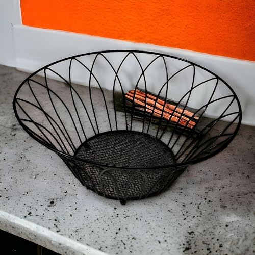 Generic - سلة فاكهة سلكية - وعاء اسود انيق من الحديد المطاوع بزخارف زهور مزخرفة، منظم مطبخ مثالي للفواكه او المكسرات او الخبز، حجم صغير 27 × 14.5 × 12 سم للمنازل العصرية.