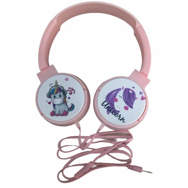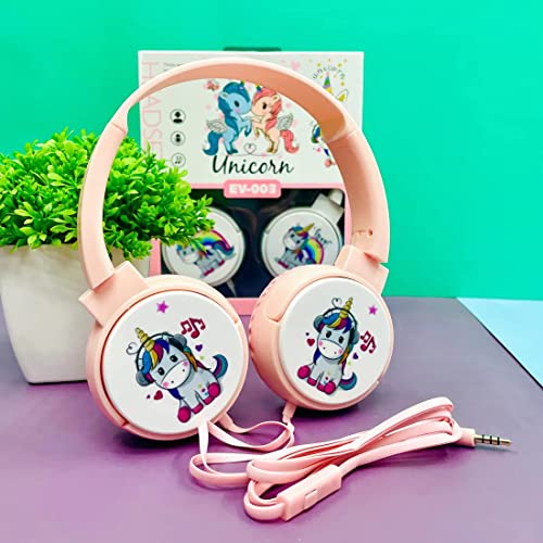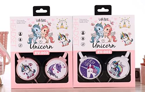 Generic - سماعات رأس سلكية بتصميم كرتوني للاطفال ميجادريم فوق الاذن مع ميكروفون للاذن قابلة للطي البنات والاولاد موديل EV-003 تصميم يونيكورن متعدد