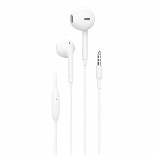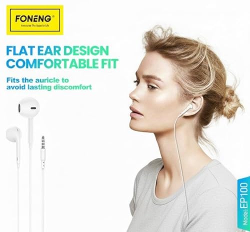 Generic - سماعات أذن سلكية بمدخل 3.5 ملم، صوت ستيريو عالي الدقة، ميكروفون مدمج للمكالمات، تحكم في الصوت، تصميم مريح أبيض ep100