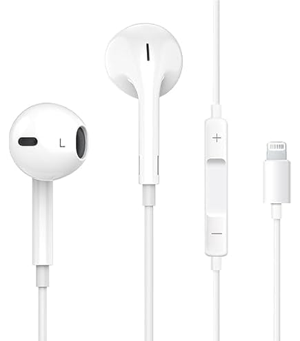 Generic - سماعات اذن سلكية بسلك L هاي فاي ستيريو ( بدون بلوتوث ) بخاصية الغاء الضوضاء مع ميكروفون مدمج وتحكم في مستوى الصوت داخل الأذن أبيض .