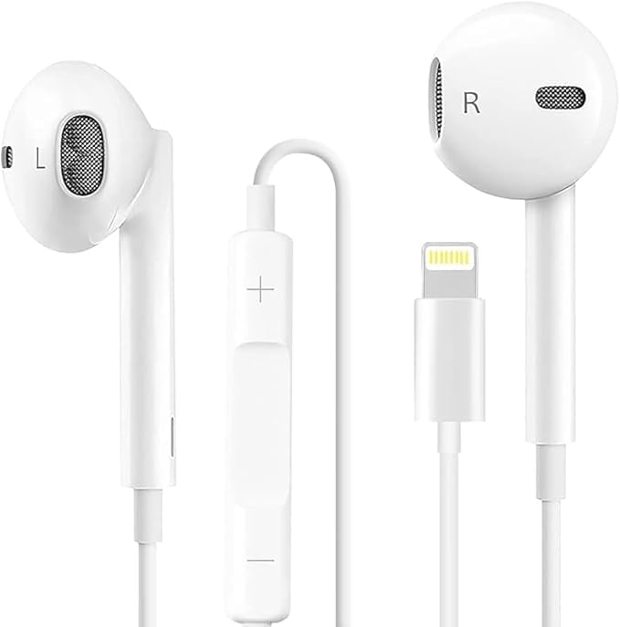 Generic - سماعات اذن سلكية ستيريو منفذ نوع L مع ميكروفون مدمج وتحكم في مستوى الصوت { تعمل بدون بلوتوث } ، أبيض