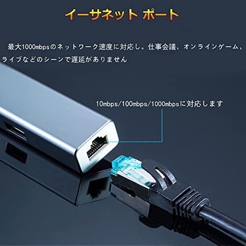 - محول موزع 4 منافذ USB / نوع C: بالإضافة إلى 3 منافذ USB 3.0 قياسية، فهو متوافق أيضًا مع كابلات الشبكة المحلية السلكية عبر منفذ USB واحد أو منفذ نوع C واحد. حيث يوفر منفذ الشبكة المحلية بسلك سرعة عالية تصل إلى 1000 ميجابت في الثانية، مما يسرع العمل بدون تأخير في الألعاب أو المؤتمرات عبر الإنترنت (يدعم 100 ميجابت في الثانية).