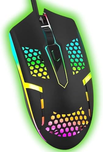 Generic - ماوس ضوئي بسلك USB للألعاب 1000 نقطة لكل بوصة، مريح مع ضوء ملون جيد التهوية، لون أسود (موديل ZR-1720)