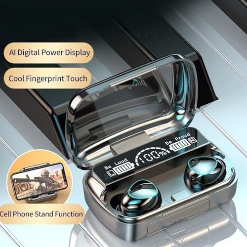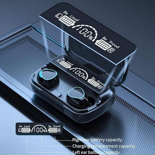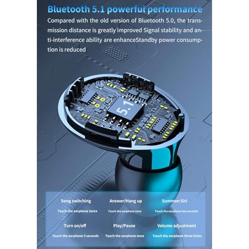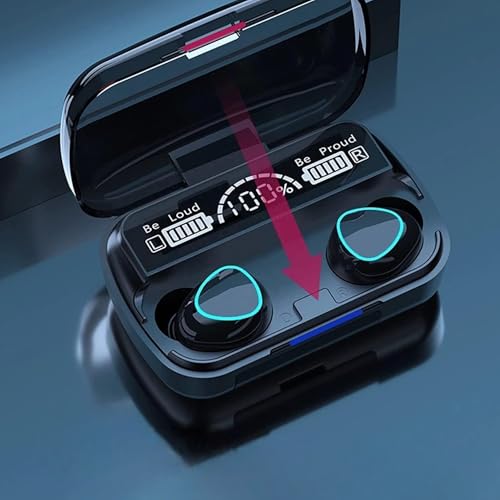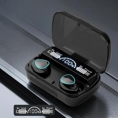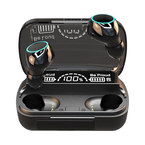 Generic - سماعات اذن بلوتوث لاسلكية M10 متوافقة مع تي دبليو اس اصدار 5.1، مع LED رقمي، صوت ستيريو هاي فاي مع ميكروفون مدمج، لون اسود