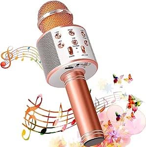 - ميكروفونات كاريوكي بلوتوث لاسلكية، مشغل ومسجل ومكبر صوت كاريوكي محمول باليد 5 في 1 مع راديو اف ام قابل للتعديل بتقنية ريمكس لأعياد ميلاد الأطفال والبنات والأولاد والمراهقين