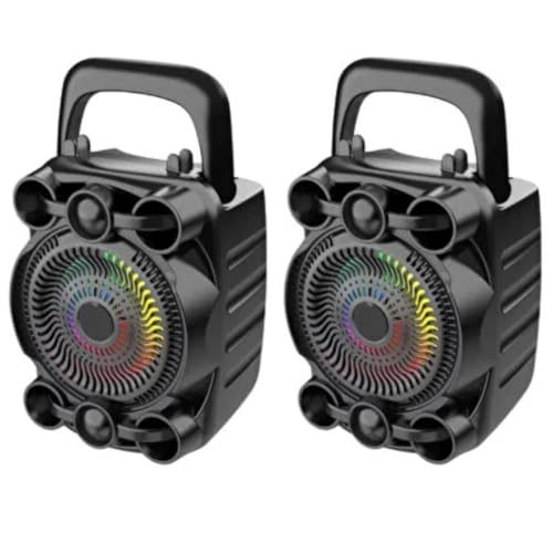 Generic - مكبر صوت بلوتوث لاسلكي مع أضواء ليد بتصميم صغير ومحمول مع USB وبطاقة TF/SD وراديو اف ام وحامل موبايل مع صوت نقي وبطارية قابلة لإعادة الشحن قوة 8 وات، مناسب للحفلات والسفر والمنزل، عبوة من قطعتين