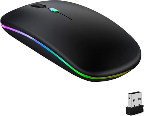 Generic - ماوس بلوتوث لاسلكي LED رفيع مزدوج الأوضاع (بلوتوث 5.1 + USB) 2.4GHz قابل لاعادة الشحن صامت مع مستقبل USB (أسود)