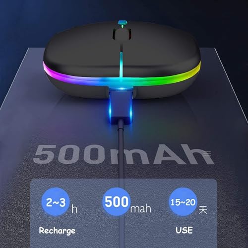 - ✅【ماوس ضوئي قابل لإعادة الشحن】بطارية مدمجة 500mAh قابلة لإعادة الشحن، يمكن شحنها بسهولة باستخدام كابل USB المرفق دون استبدال البطارية. شحن لمدة ساعتين فقط، يمكنك استخدامه لمدة 7-15 يومًا تقريبًا. وقت الاستعداد طويل جدًا، يتم تثبيت ميزات توفير الطاقة ووضع السكون التلقائي ووضع الاستيقاظ لتوفير الطاقة. قم بإيقاف تشغيل إضاءة ليد للماوس عند عدم استخدامه لتوفير الطاقة.