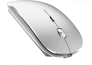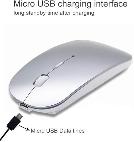 Generic - ماوس بلوتوث لاسلكي، ماوس وضع مزدوج ال اي دي قابل لإعادة الشحن (بلوتوث 5.2 ومستقبل USB) ماوس محمول صامت، للاب توب/الكمبيوتر المكتبي/جهاز التابلت (فضي)