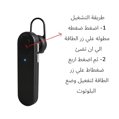 - طريقة الاستخدام: 1- اضغط مع الاستمرار على زر التشغيل حتى يضيء. 2- ثم اضغط على زر التشغيل أربع مرات لتفعيل وضع البلوتوث.